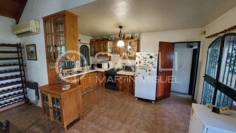La vivienda se emplaza sobre un terreno de 2000 m². Cuenta con altillo vidriado en planta alta y, en planta baja, dispone de 3 dormitorios, de los cuales 2 son matrimoniales con aire acondicionado y 1 dormitorio con 2 camas simples (total 6 camas). Además, posee 2 baños, cocina equipada con heladera y freezer, vajilla y mesas para 10 personas, y living comedor con hogar a leña.